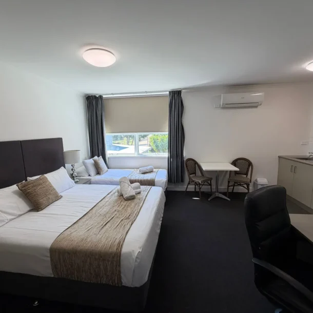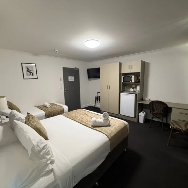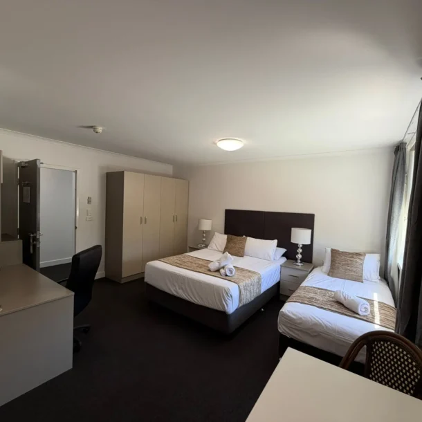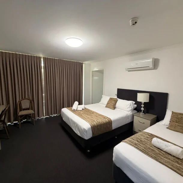 Perfect for travelling companions or small families, this spacious room offers a queen bed and king single bed, along with Smart TV, air-conditioning, complimentary WiFi and more